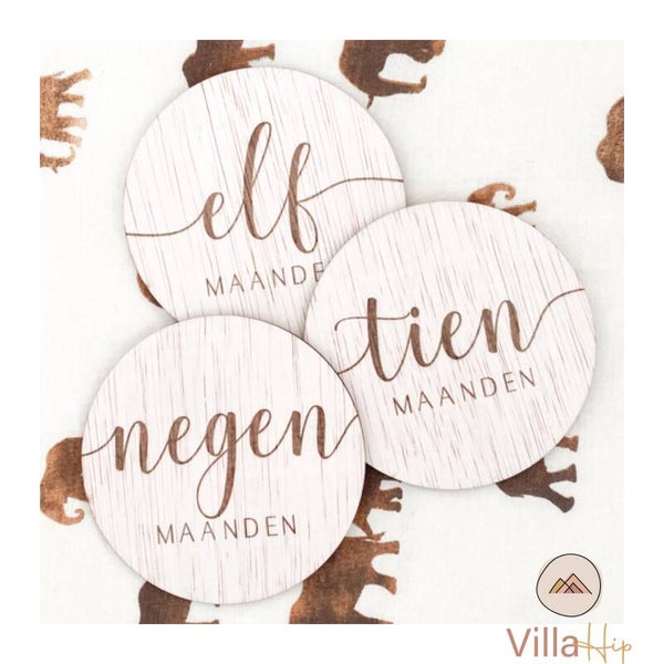 Deze houten mijlpaalschijven zijn onwijs leuk om te geven en te krijgen als kraamcadeau.
