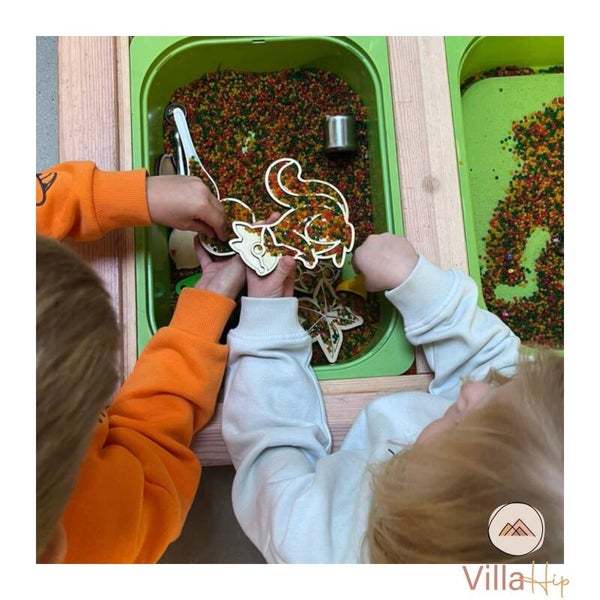 Deze vulvormen zijn een mooie aanvulling voor het “open ended” spelen. De mogelijkheden zijn eindeloos want jou kleintje speelt met zijn eigen fantasie en ontdekt, leert en ontwikkeld spelenderwijs. Met 1 stuk speelgoed kun je wel honderd verhalen verzinnen. Vul een bak of speeltray met speelrijst, gekleurde kikkererwten of speelzand en voeg hier van alles aan toe, waardoor jouw kleintje eindeloos speelplezier heeft.