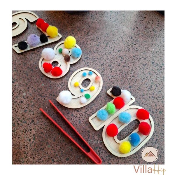 Deze houten set wordt gemaakt van kindvriendelijk hout en is niet geschikt voor water. De cijfers zijn 10 cm hoog.