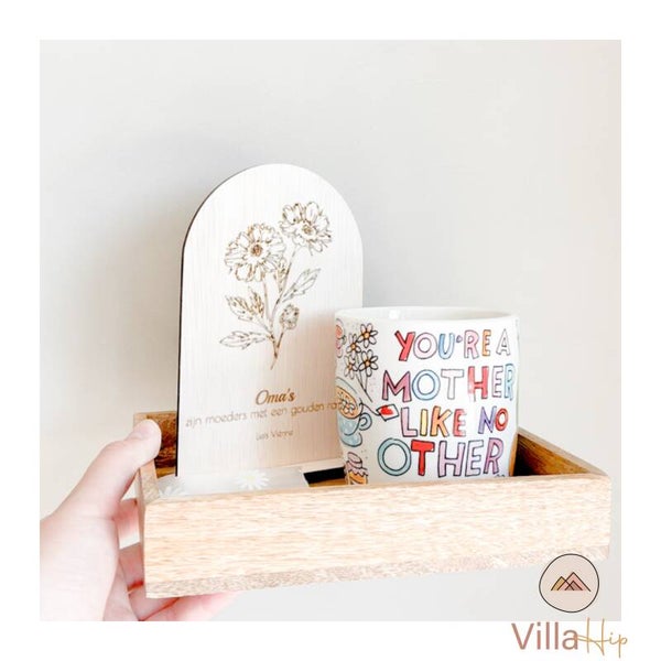 Voor de allerliefste mama of oma! Een bosje goudsbloemen met een mooie tekst eronder + de naam van de (klein) kinderen eronder.