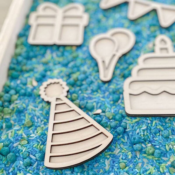 Breng elk feest tot leven met deze set houten vulvormen in feestthema. De duurzame houten vormen zijn perfect om te vullen met rijst, speelzand of kleine materialen en stimuleren creatief spel en fijne motoriek. Ideaal voor thuis, school of kinderopvang. Dankzij het tijdloze design en natuurlijke materiaal passen de vulvormen bij elk speelmoment. Een speelse en leerzame toevoeging aan open-einde speelgoed en thematisch spel rond feest en vieren.